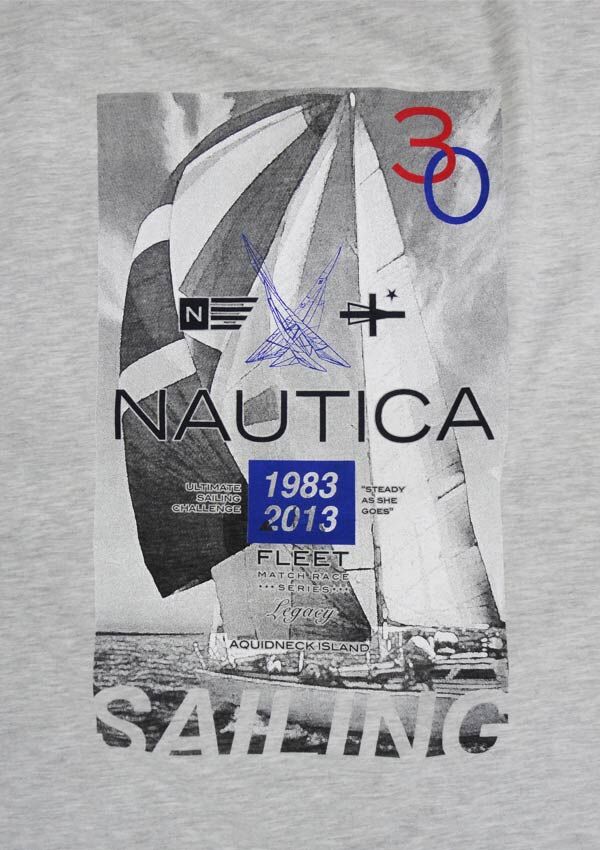 Nautica Sail t-shirt with print on back. Classic fit. Made of 90% Cotton/ 10% Polyester.