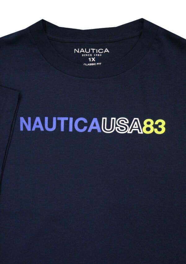 Nautica USA tshirt with large chest print on front and back. Classic fit. Made of 100% Cotton.