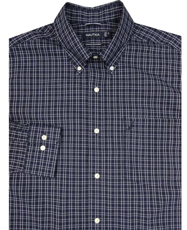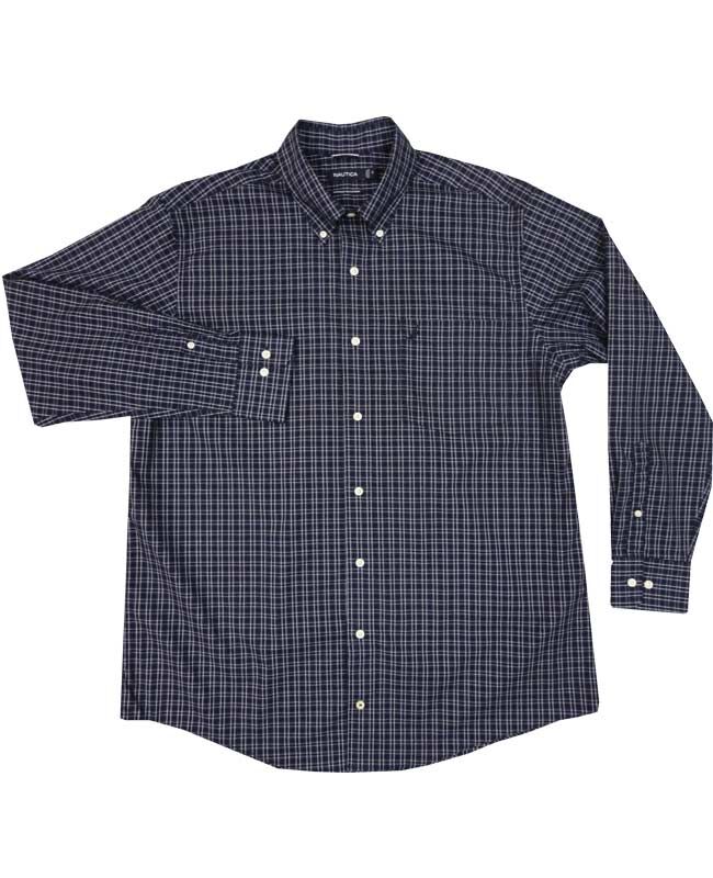 Nautica window check long sleeve shirt with single chest pocket and button down collar. Twin pleated back. Made of 100% Cotton.