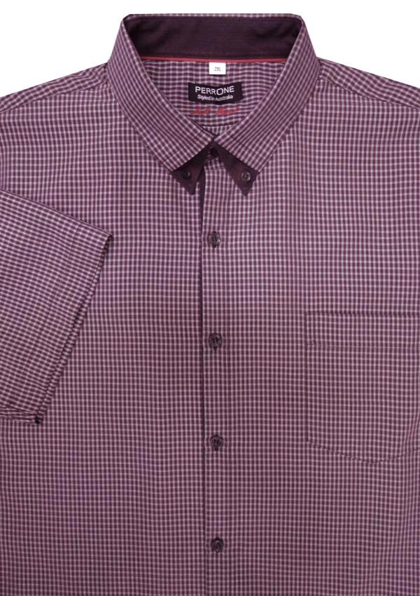 Perrone double collar short sleeve shirt. With single chest pocket. Button collar. Soft touch fabric. Made of 60% Modal/ 40% Polyester. Full chest measurements are as follows: 2X = 126CM 3X = 132CM 4X = 136CM 5X = 142CM 6X = 146CM 8X = 154CM
