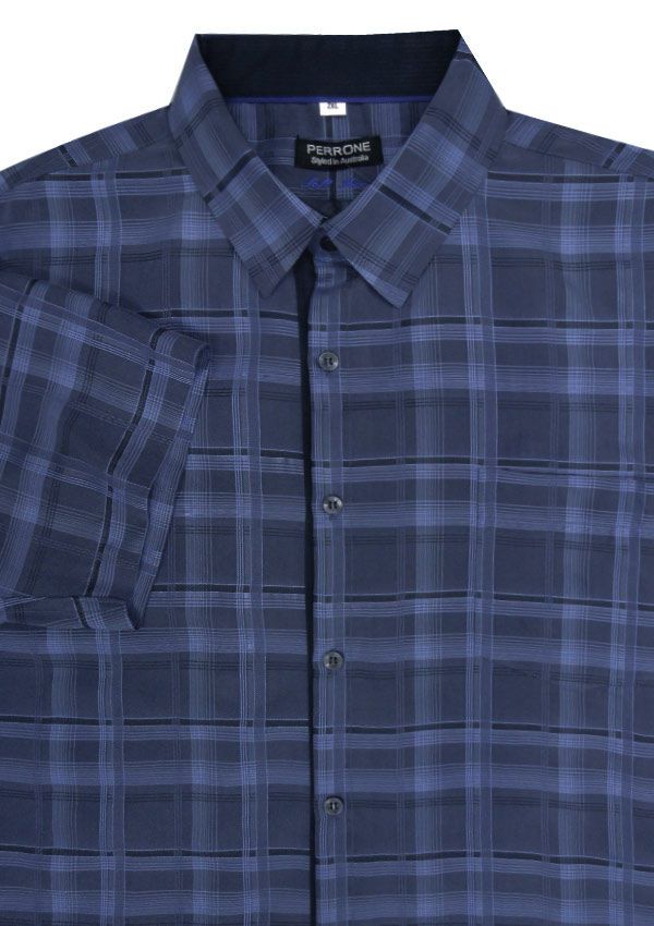 Perrone Trim short sleeve shirt. With single chest pocket. Button collar. Soft touch fabric. Made of 53% Modal/ 47% Polyester. Full chest measurements are as follows: 2X = 124cm 3X = 128cm 4X = 134cm 5X = 138cm 6X = 142cm 8X = 152cm