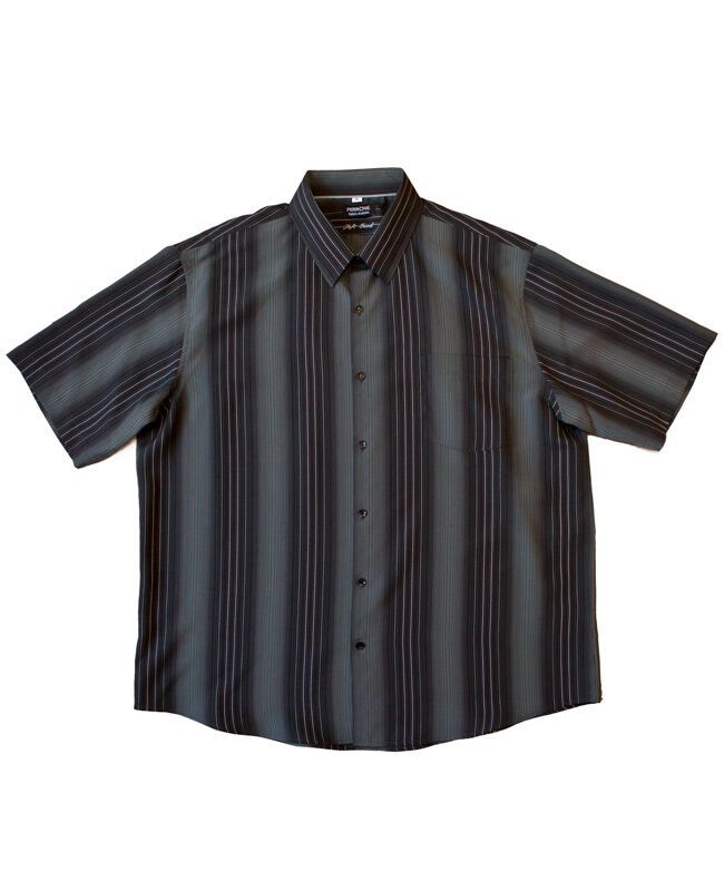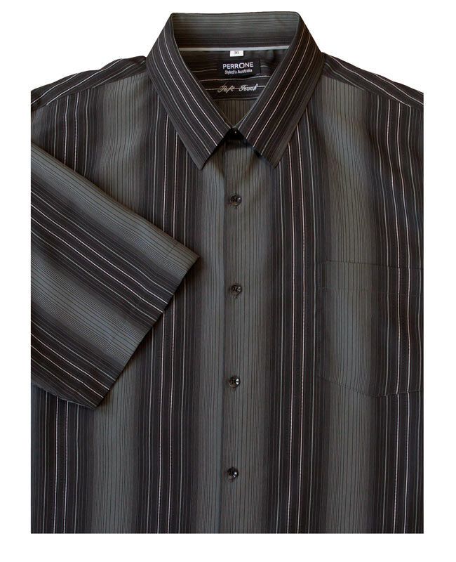 Perrone vertical striped short sleeve shirt with single chest pocket. Made of 53% Polyester / 47% Modal.