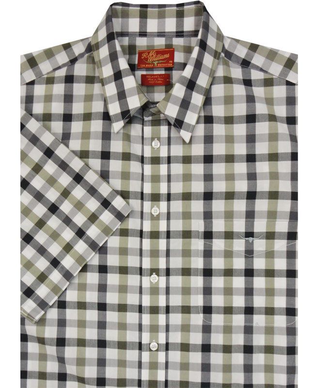 R M Williams check short sleeve shirt with single chest pocket. Made of 100% Cotton.