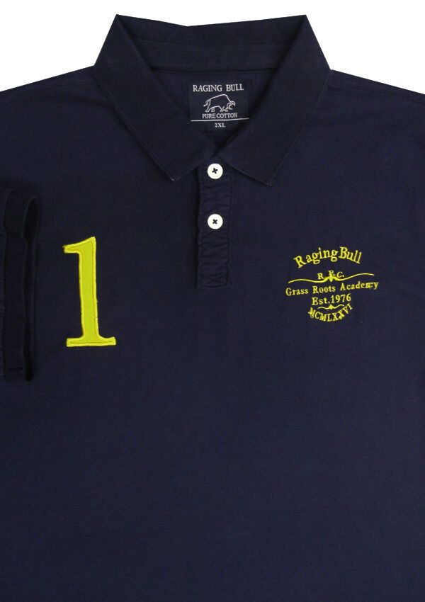 Raging Bull Chambray short sleeve polo. With embroidery on chest and sleeve. Made of 100% Cotton.