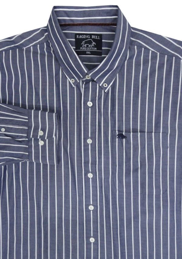 Raging Bull Med Stripe long sleeve shirt. With single chest pocket. Button collar. Made of 100% Cotton.