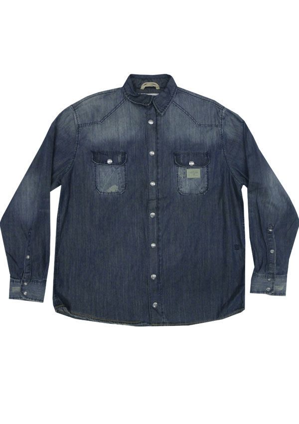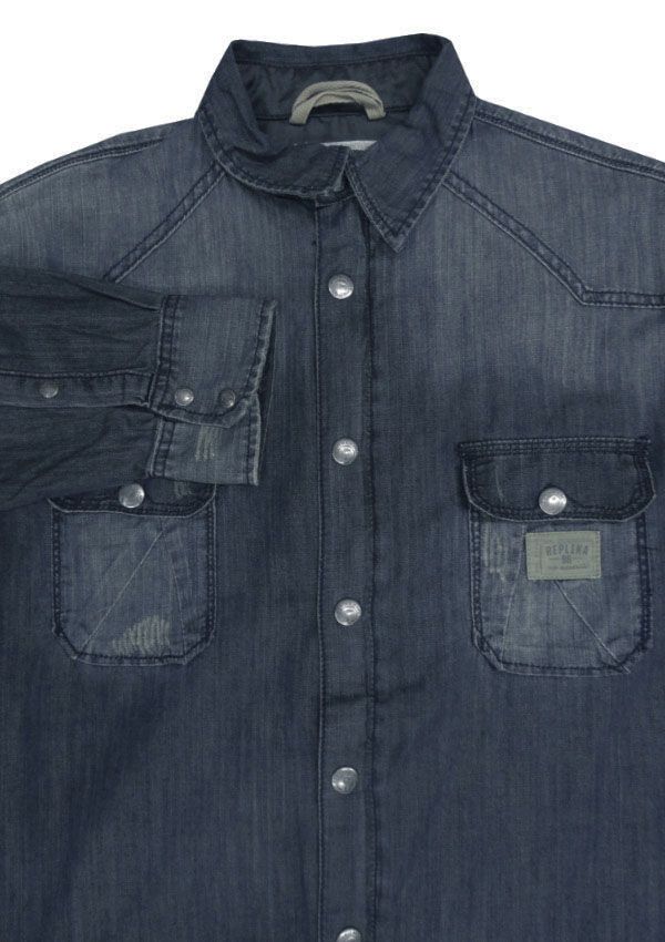 Replika Denim long sleeve shirt. With two chest pockets. Button collar. Clip-up button front. Made of 100% Cotton. Full chest measurements are as follows: XOS = 122CM 2X = 128CM 3X = 136CM 4X = 144CM 5X = 154CM 6X = 160CM 8X = 176CM