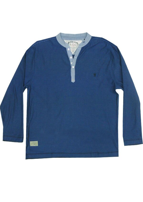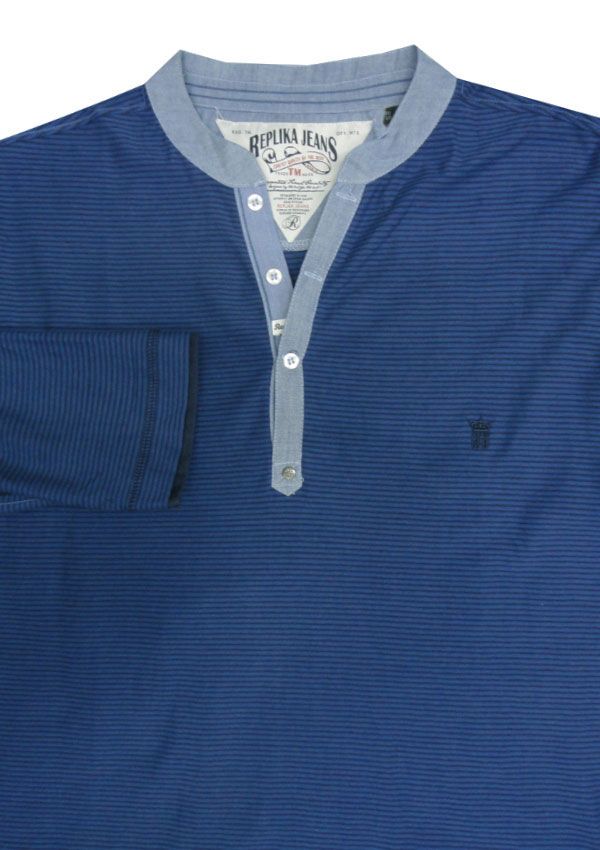 Replika Henley long sleeve t-shirt. With 1/4 button-up front. Made of 100% Cotton.
