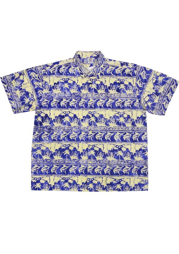 Rum Reggae Gone Fishing short sleeve shirt. Double chest pockets. Button collar. Made of 100% Cotton.