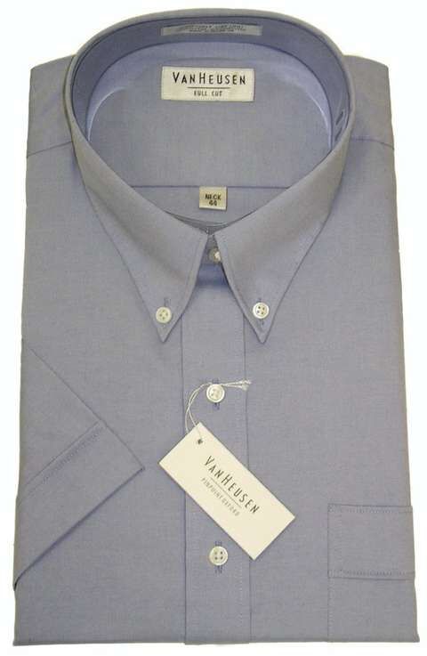 Van Heusen Short Sleeve Business shirt with button down collar. Full Cut, 85% Cotton 15% Polyester, Pinpoint Oxford.